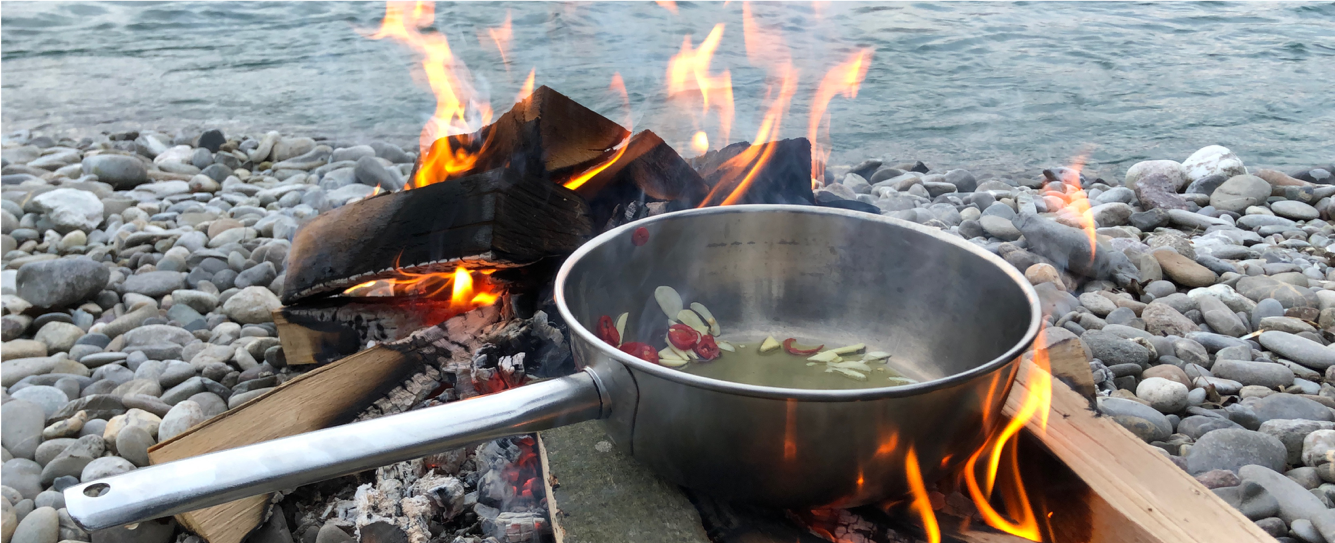 feuerkochen geht bei jedem wetter. in jeder jahreszeit, auch im winter.
