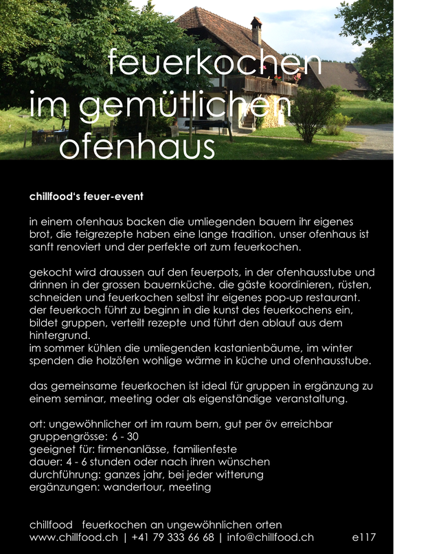 wenn du möchtest, kannst du chillfood's feuerkochwelten in der füüri oder an einem anderen ungewöhnlichen ort erleben.
