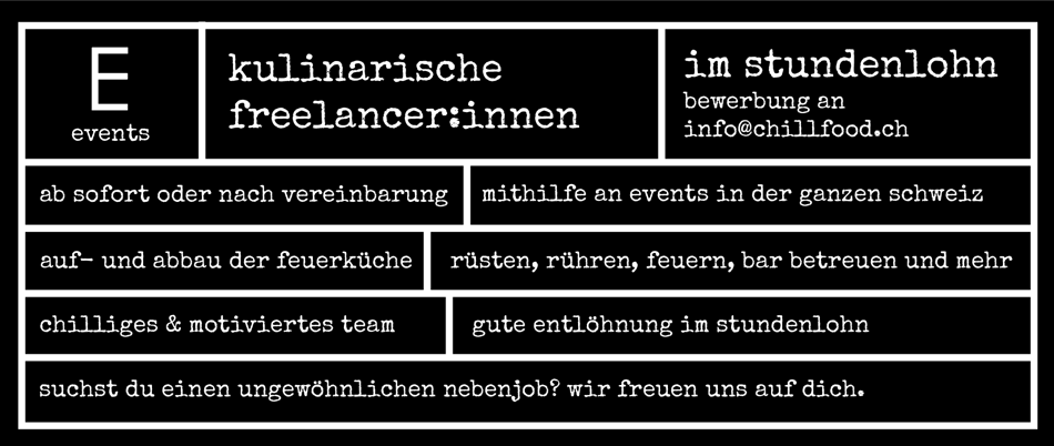 chillfood und füüri sind geschützte marken - alle bilder sind eigentum von chillfood - chillfood, chillevents, chilldrink, gwürzium und füüri sind unternehmungen der chillfood ag